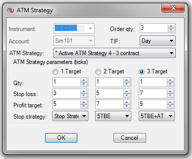 Advanced Trade Management (ATM) is NinjaTrader’sTM signature order management technology that lets you pre-define personal trade management strategies including; multiple profit targets and stop loss orders, one-cancels-other (OCO) orders, auto-breakeven stops, trailing stops and much more. This feature can significantly enhance trade performance by automatically submitting all entry/exit orders within milliseconds! This feature alone tends to cover the cost of the platform while simultaneously lowering your stress level by eliminating the “deer in the headlights” feeling commonly associated with manually managing multiple exit orders in fast moving markets.